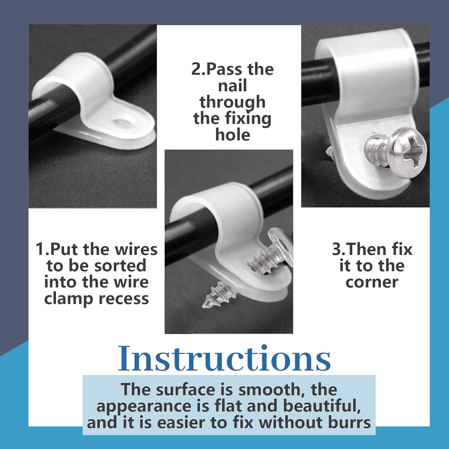 - ★【Easy to Use】: The clips are designed as R-type, stylish, flexible, simple and innovative. Only need to put the wire into the round hole and fix it with a screw on the wall or the ground after tightening. Then tighten the wires with one screw. Fast and convenient.