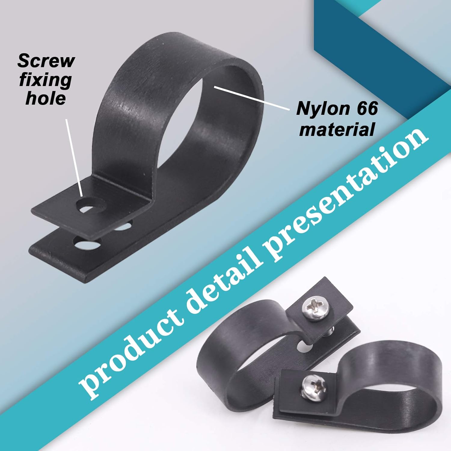 - ★【What You Get】: In this kit includes 60pcs 1 inch black nylon R-type cable clip wire clamps and 60pcs screws. Such a large number of clamps can meet your multiple work needs, so that you do not need to buy the same size products.