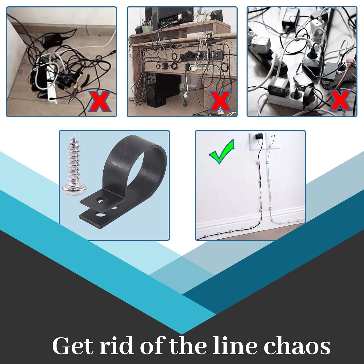 - ★【Easy to Use】: The clips are designed as R-type, stylish, flexible, simple and innovative. Only need to put the wire into the round hole and fix it with a screw on the wall or the ground after tightening. Then tighten the wires with one screw. Fast and convenient.