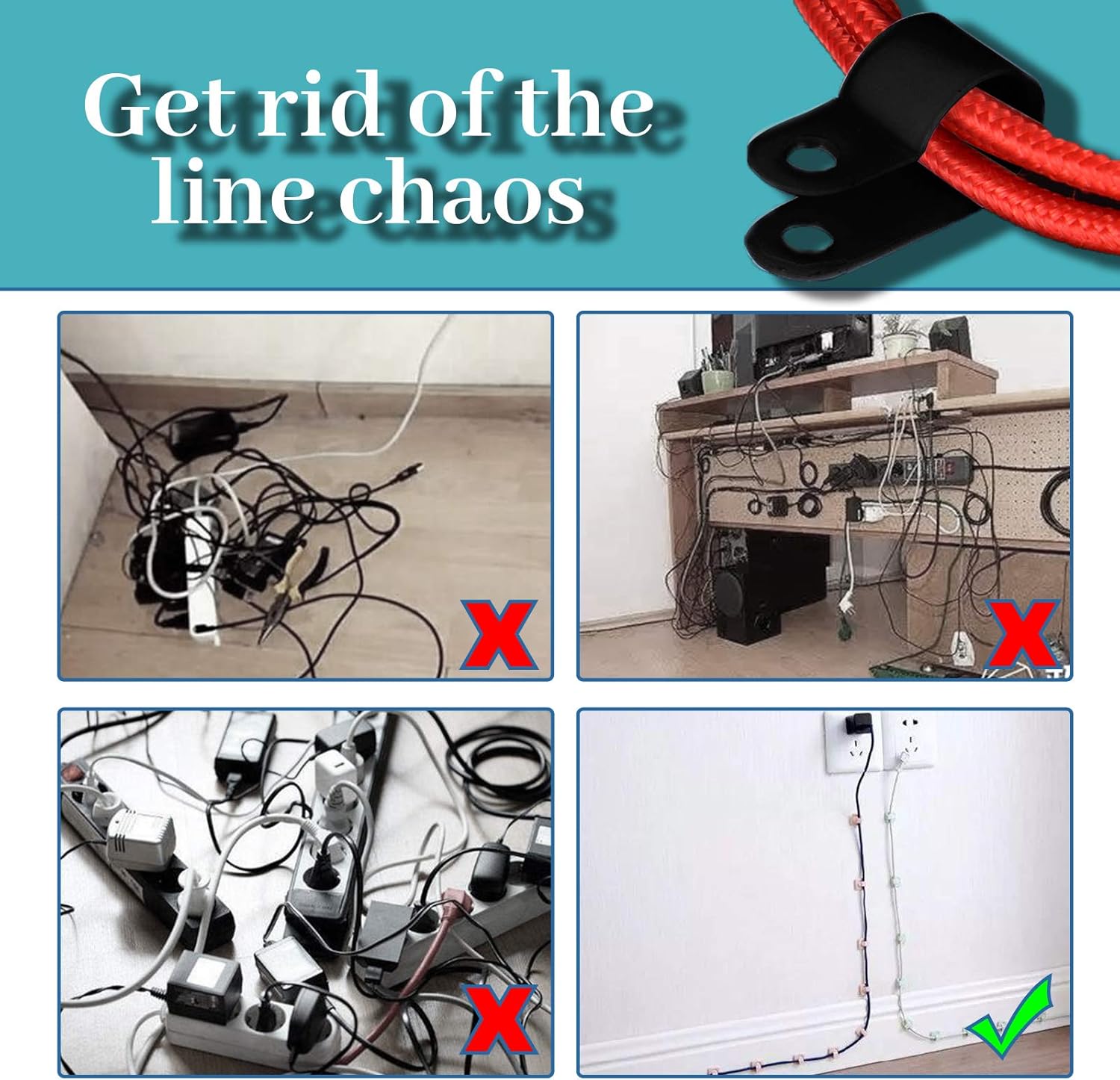 - ★【Wide Application】: In our daily life, there always so many wires in your house, office or garage to cause mess. These clips will be helpful in warehouse, factory, house or office to manage mess wires and cords, such as computer cables, TV cables, electrical wires and so on.