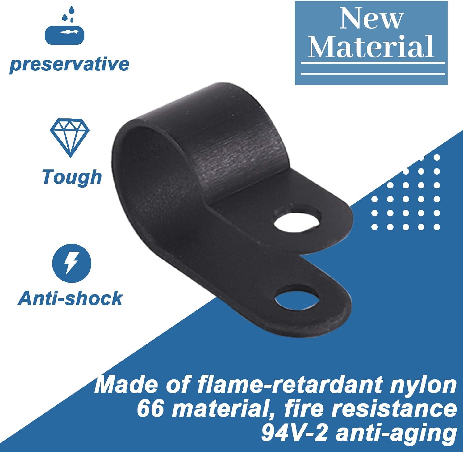 - ★【What You Get】: In this kit includes 120pcs 1/2 inches black nylon R-type cable clip wire clamps and 120pcs screws. Such a large number of clamps can meet your multiple work needs, so that you do not need to buy the same size products.