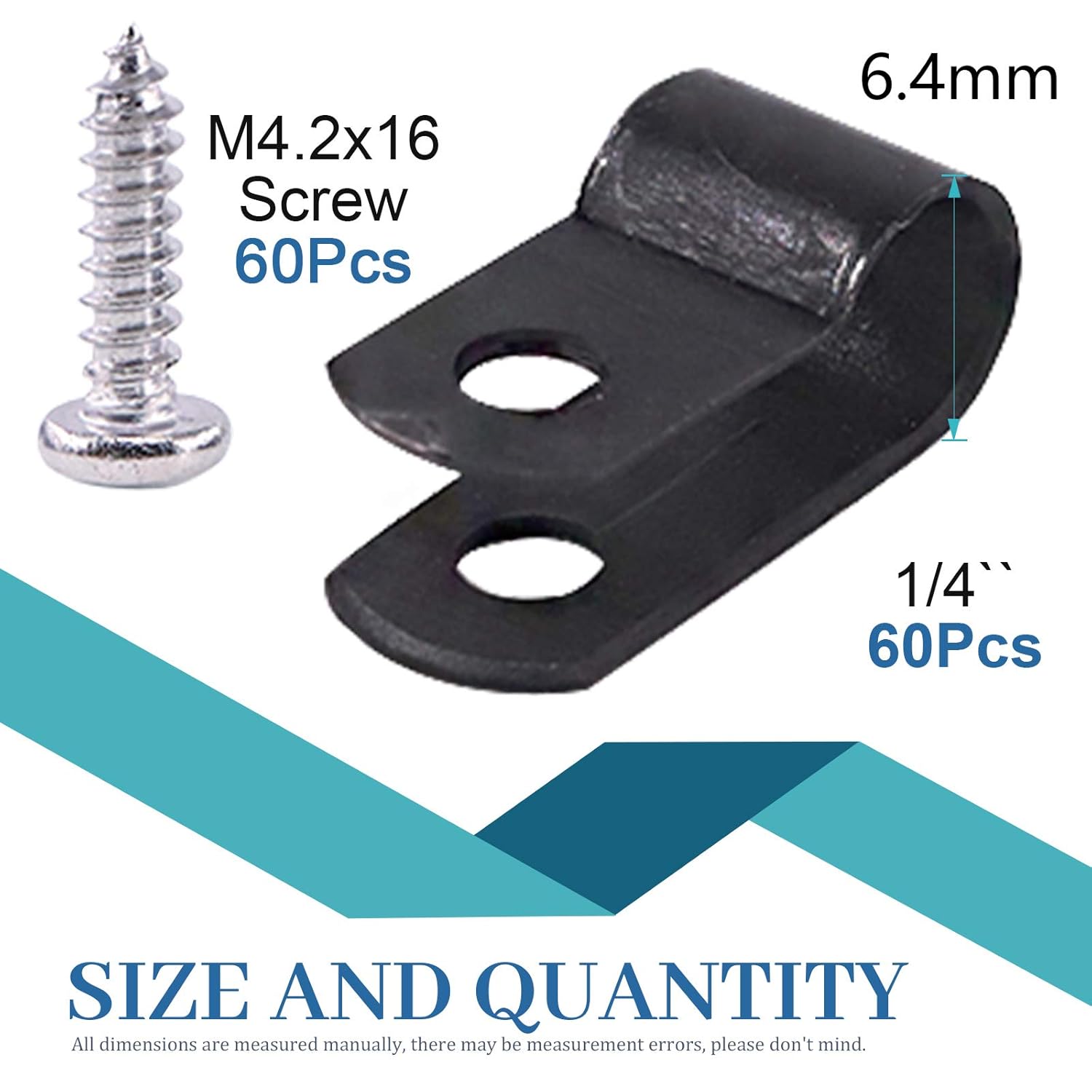 Glarks 60Pcs 1/4 Inch Black Nylon Screw Mounting R-Type Cable Clip Wire Clamp Kit with Screws for Wire, Conduit and Cable Conduit