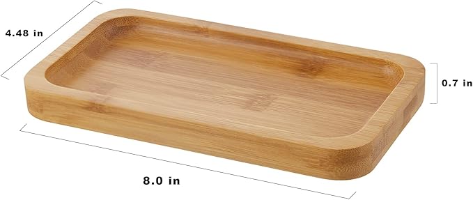 - Bamboo Bathroom Tray: Come with a bathroom vanity tray, made out of renewable bamboo, fit both bathroom jars and match effortlessly. Thick and sturdy, the bathroom bamboo tray also works well for holding perfume, candles, jewelry, face wash, keys, watch and other small things.