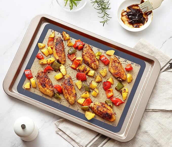 - 100% Platinum Food Grade Silicone Mat: Guanci silicone baking mat has passed the LFGB CERTIFICATION! This means that you can use it with confidence. Because incorporate fiberglass mesh inside of food grade silicone, aside from their nonstick surface, they provide even heat distribution. The baking mat will not produce peculiar smell or smoke at 482°F