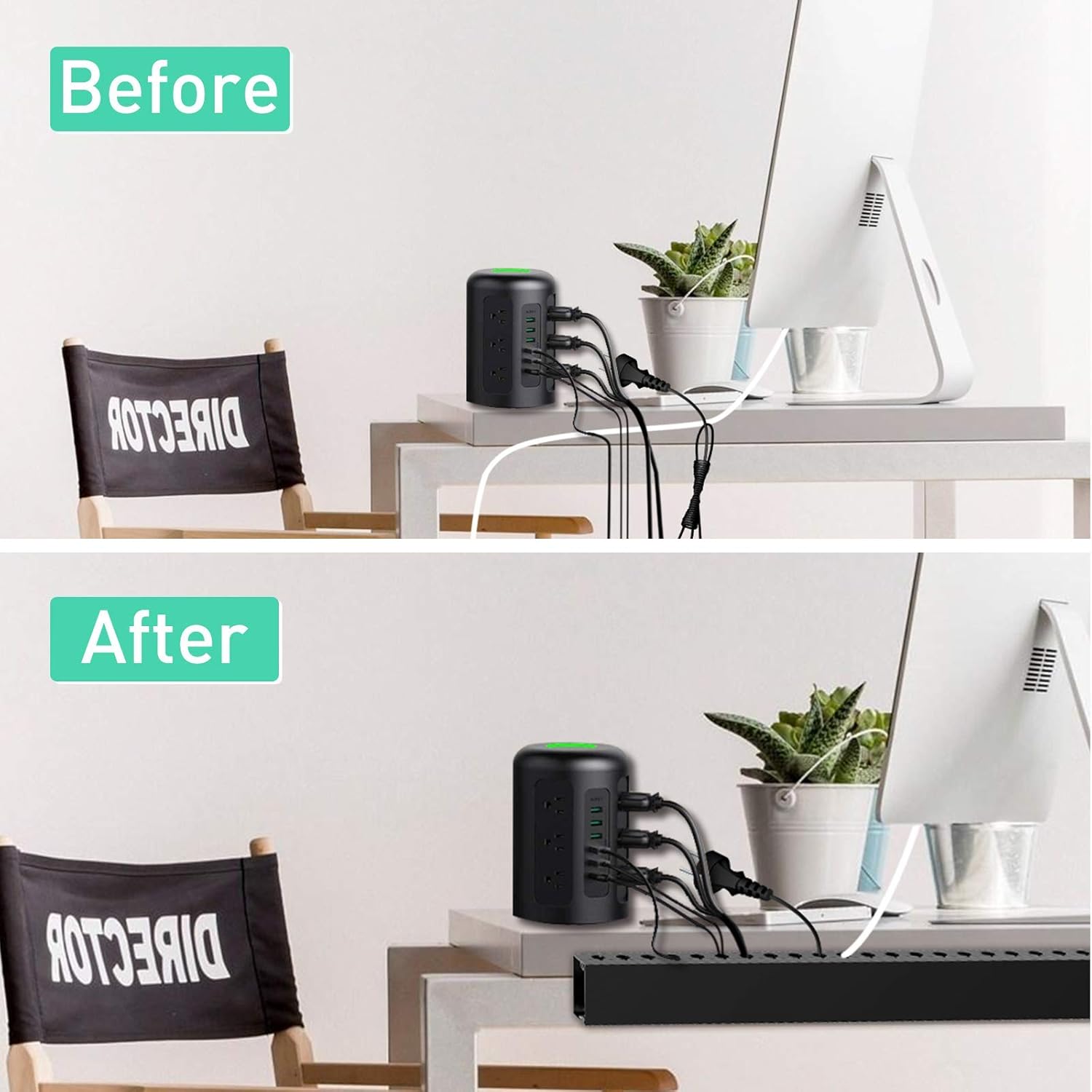 - NEW UPGRADED OPEN SOLT :The diameter of the wire slot hole is (0.4inch/10mm), which can accommodate AWG1/0 wire and cable; it is very suitable for thicker computer power cables with a diameter of less than 0.4 inches; 3-pin plug cables; Cat-5 or Cat-6 Ethernet cables and camera cables, etc. ;Increased the size of the trunking (0.98inch/25mm, 1.6inch/40mm), can accommodate up to 8 Cat-5 Ethernet cables; more storage space for all power cords, cables and wires in the office or home