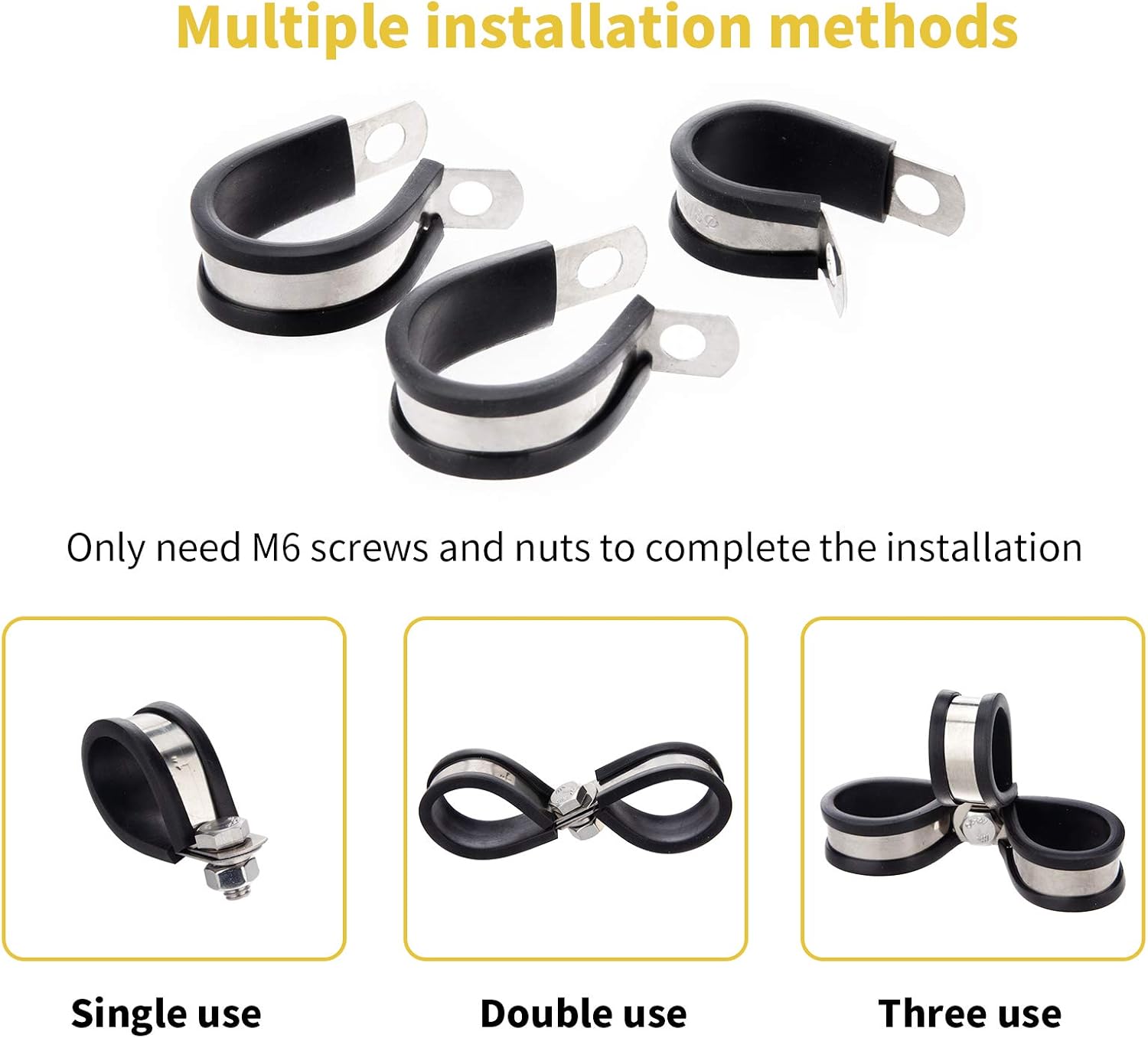 - 【Easy to install】The R-shaped design is easy to install and disassemble. You only need M6 (6mm)bolt and nut to easily complete your installation work. These cable clamps are packed in a transparent storage box according to specifications, so you can choose the size easily