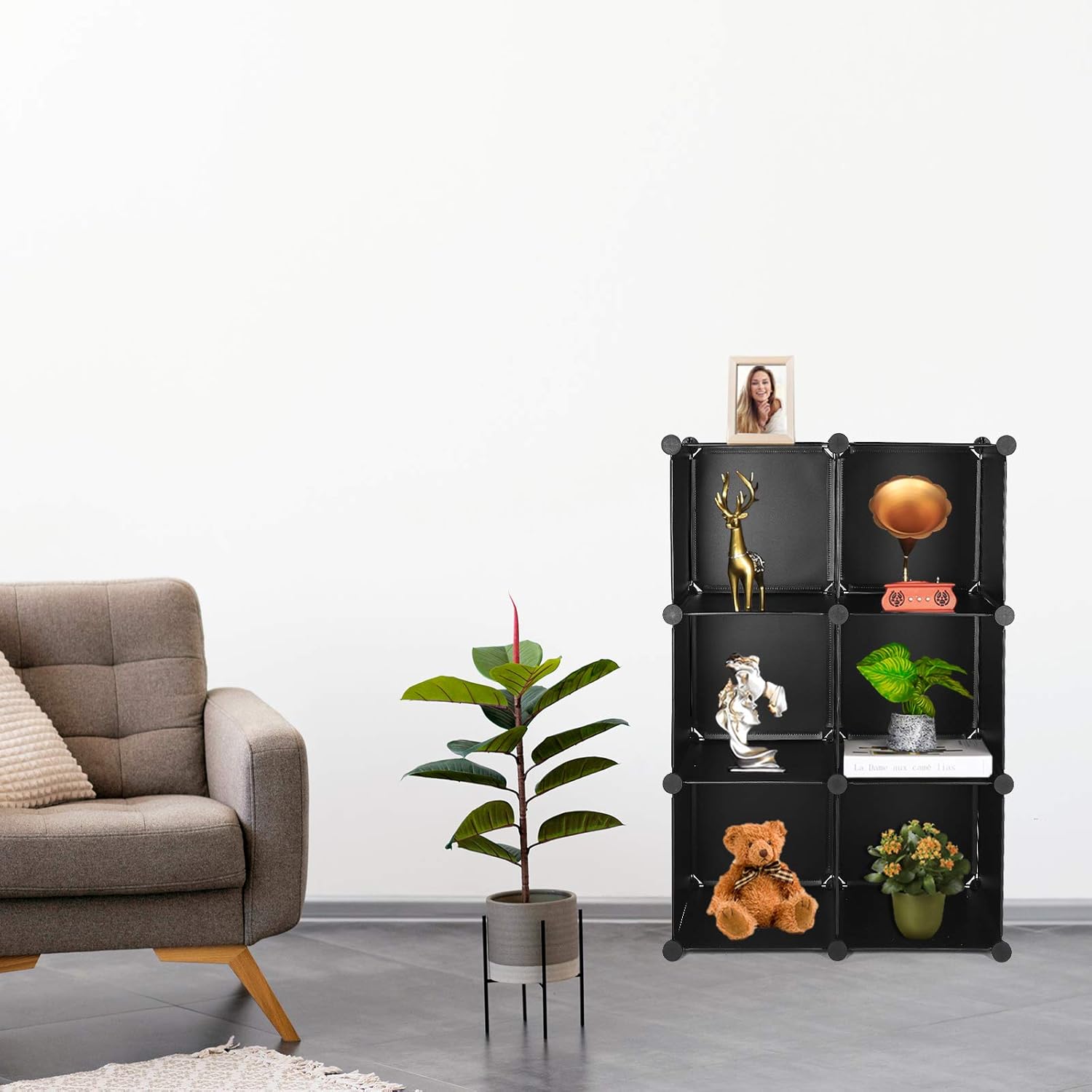 TUMUCUTE Cube Storage Organizer, 6-Cube DIY Plastic Closet Cabinet Modular Bookcase, Storage Shelves for Bedroom Living Room, Office, Black