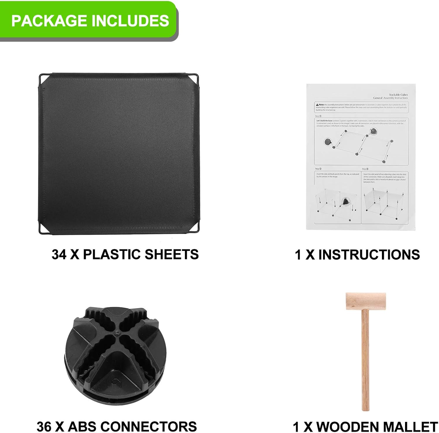 - 【Durable&Stable】: Constructed with waterproof polyethylene plastic sheets with sturdy metal wire frame and ABS resin connectors, which provides high stability. The max load capacity of each cube is up to 15lbs.