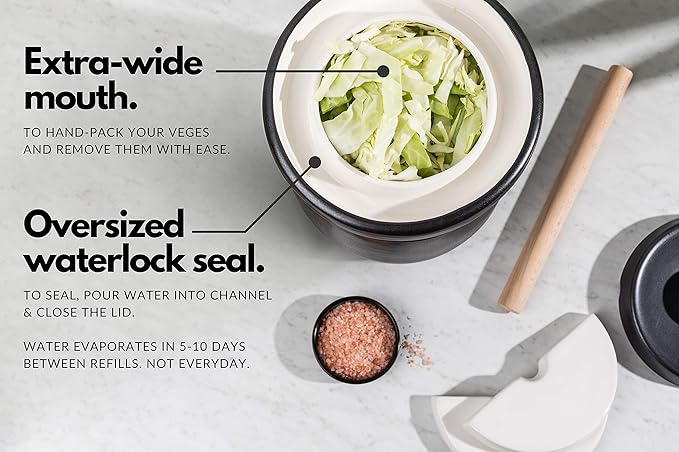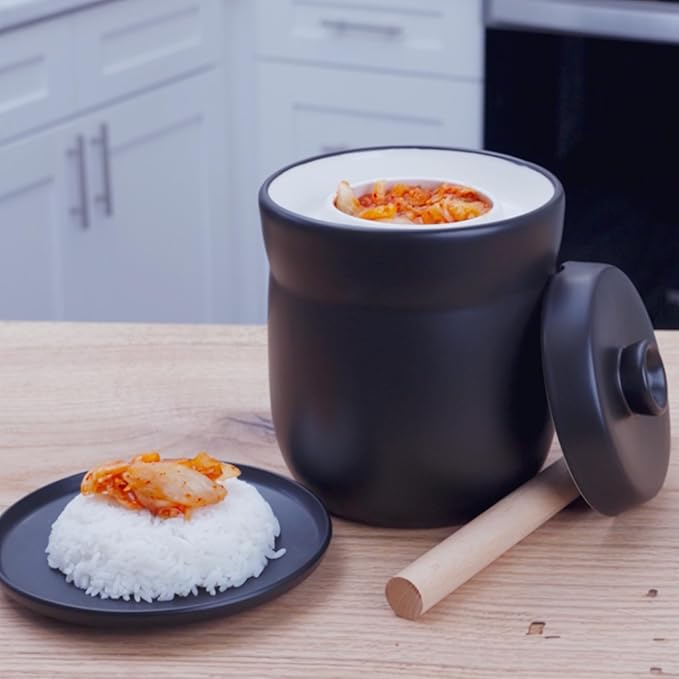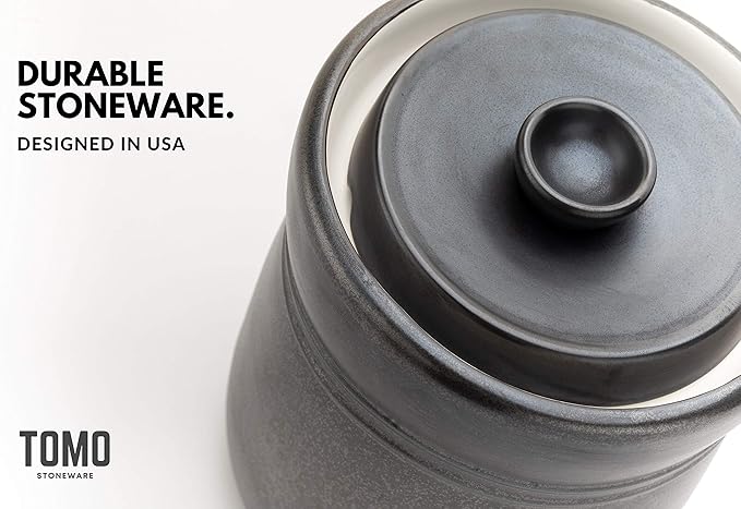 - ✔️ SUPERIOR QUALITY: TOMO Stoneware combines innovative design with traditional, quality craftsmanship. Make nourishing, probiotic rich foods like german sauerkraut, pickled vegetables, kombucha, and kimchi at home. Every detail was considered to develop this restaurant-grade fermenting and pickling crock. KIT INCLUDES: 2 weights and wooden tamper.