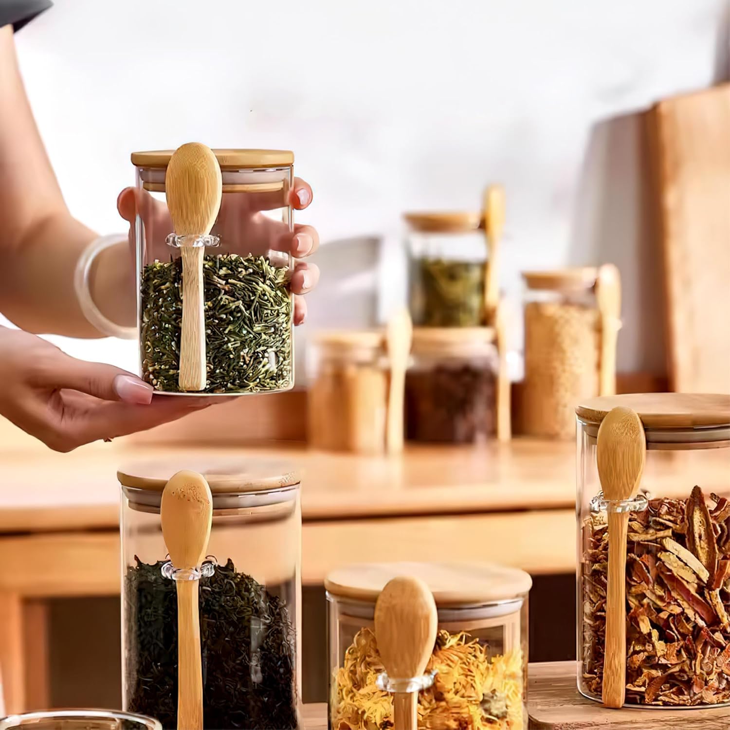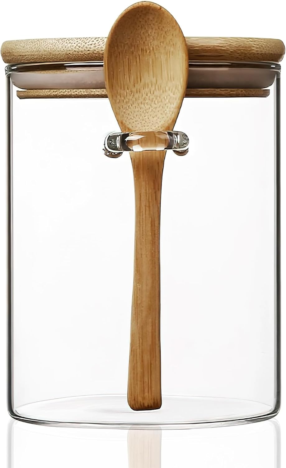 15 oz/450 ml Glass Storage Canister with with Airtight Lid, Cute Clear Decorative Container Jar with Wooden Spoon for Coffee Spice Candy Salt Cookie Condiment Sugar Matcha Tea Overnight Oats