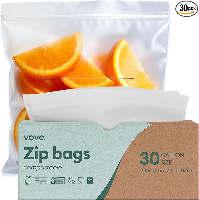 Vove Compostable Gallon Bags, Extra Large 30 Count – Freezer Safe, Leak Proof, Non Toxic Food Storage for Meal Prep & Snacks, Plant-Based Eco Bags