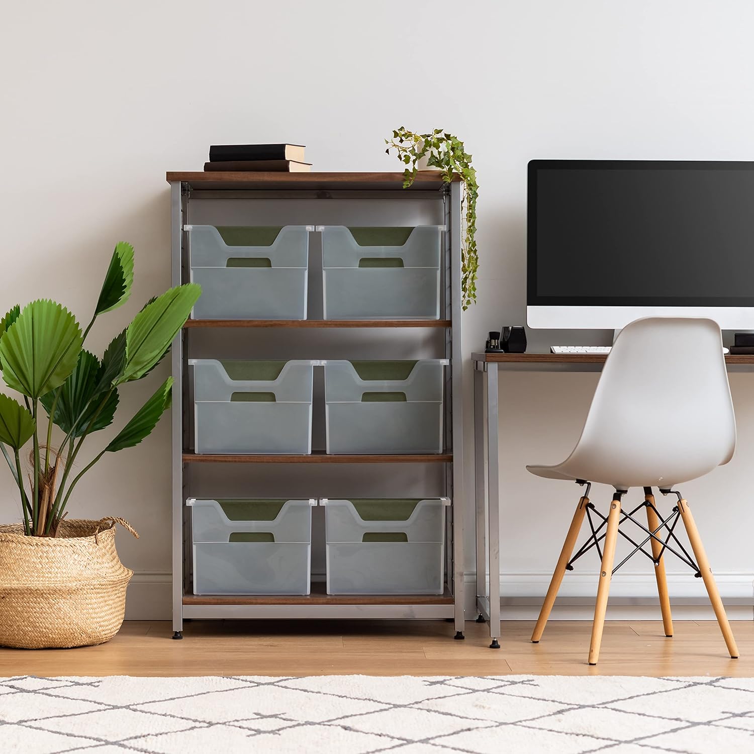 IRIS USA Small Portable Desktop File Box with Open Lid, 6 Pack, Side Handles, Hanging File Folders, Tabs & Inserts, Letter Size, Magazines, Newspapers, Mail, Books, Notebooks, Clear