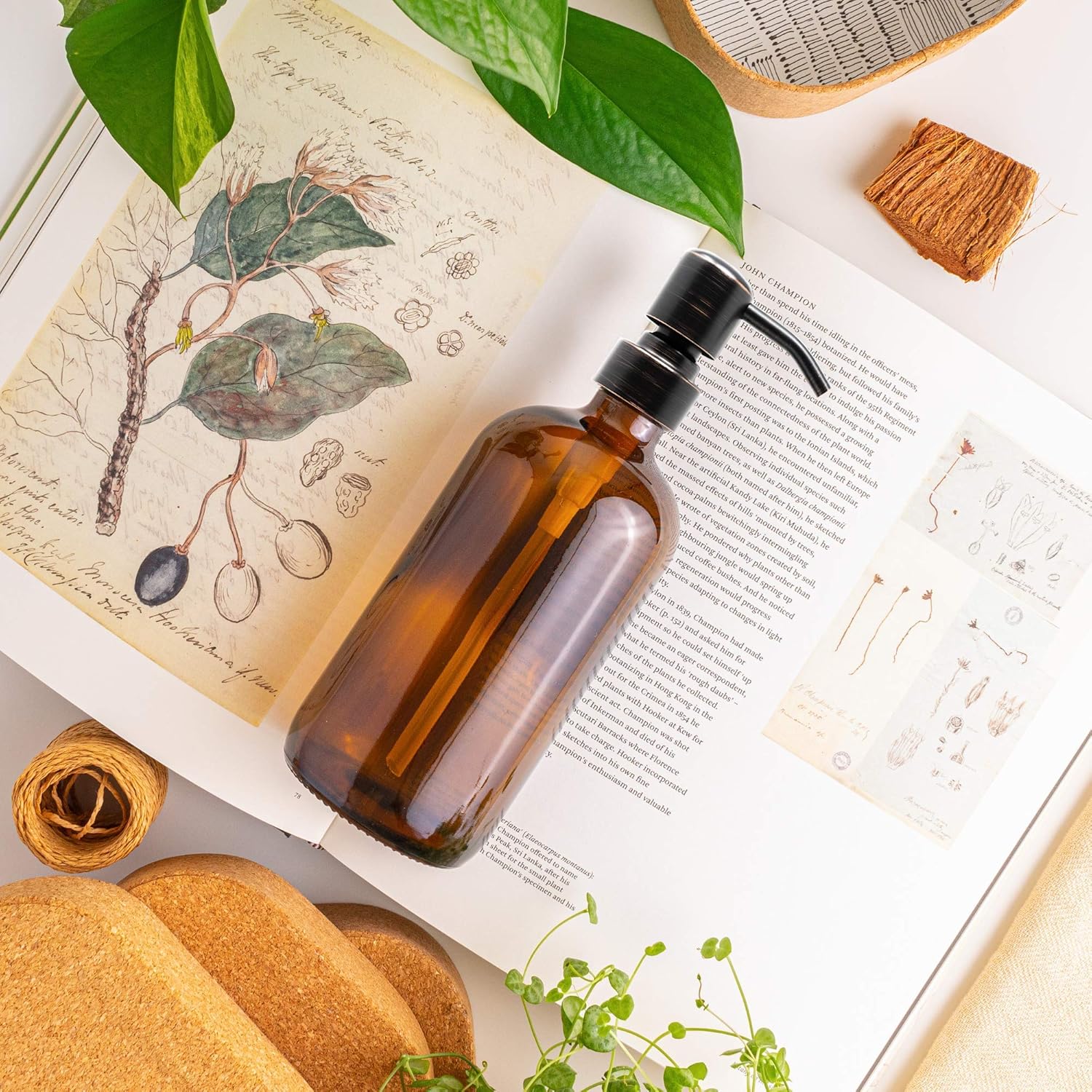 - UNRIVALED CONSTRUCTION - Set of 2 premium thick glass soap dispenser with pump. 16 Oz fortified amber bottles, refillable soap dispenser for daily use. Vine Creations soap dispensers are Lead-free.