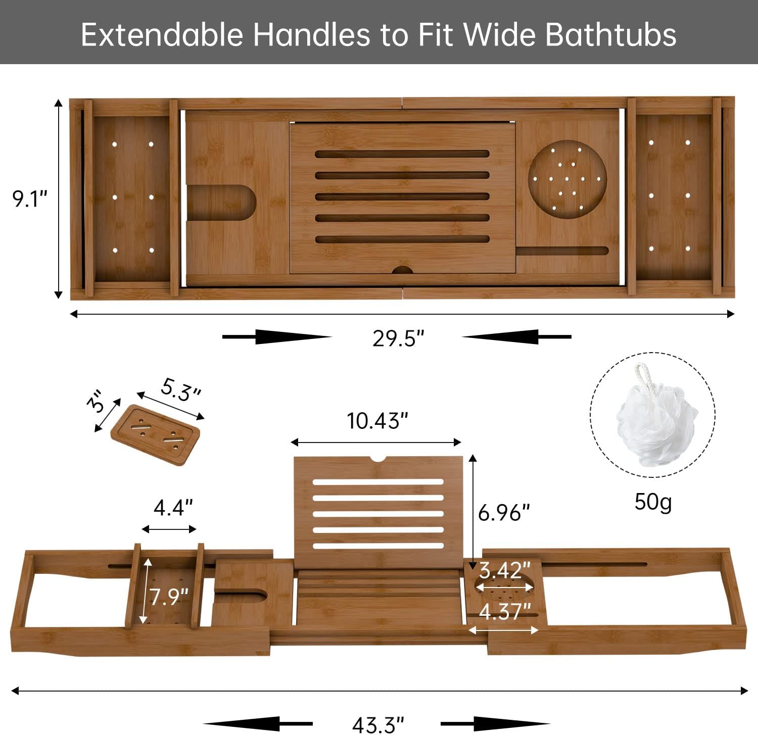- IDEAL GIFT CHOICE: No assembly required and easy to care. The bamboo bath tray designed with porous & hollow conducive to ventilation and drying, it’s a luxurious gift for Valentine's Day ,Thanksgiving and Christmas. Free soap dish and bath sponge are ideal addition to the bathtub caddy set.