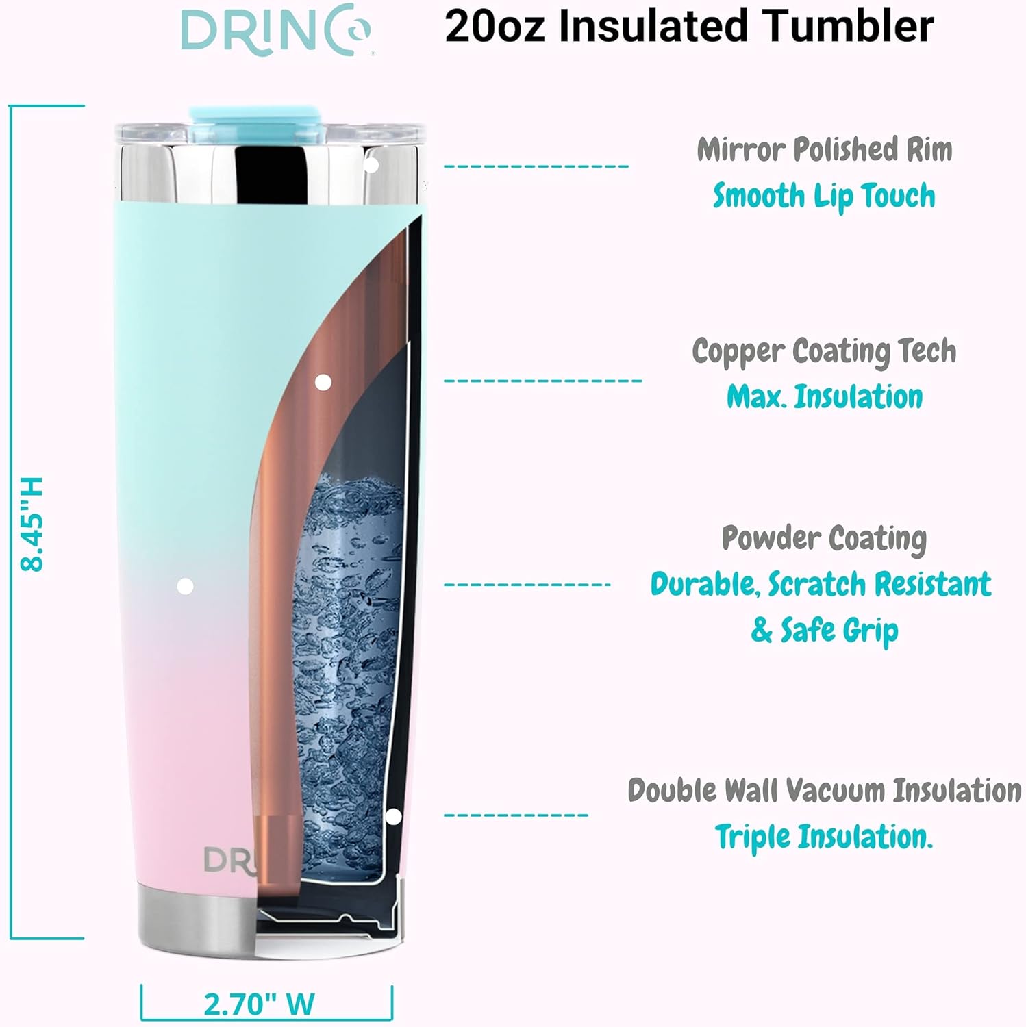 Drinco - 20 oz Stainless Steel Tumbler | Double Walled Vacuum Insulated Mug With Lid, 2 Straws, For Hot & Cold Drinks (20oz Macaron, 20oz)