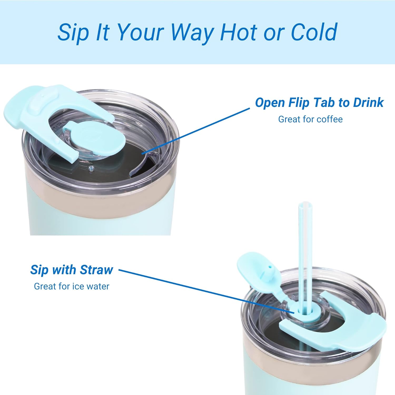 - ✅ VACUUM INSULATION: Our vacuum thermos insulated tumbler, coffee cup with splash proof lid keeps it sweat-free from the outside, no matter what you drink. The ultimate portability and comfort large mouth makes it easy to drink.