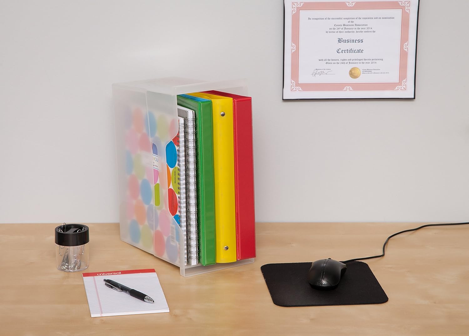 IRIS USA Medium Portable Desktop File Box with Open Lid, 6 Pack, Side Handles, Hanging File Folders, Tabs & Inserts, Letter Size, Magazines, Newspapers, Mail, Books, Notebooks, Clear