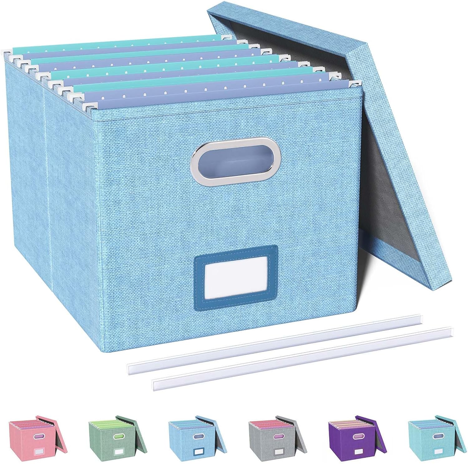 - Upgraded File Storage Box: Material and fabric upgrade and reinforcement, More durable, This file storage organizer is made of high quality MDF board, better support and bearing capacity. The lid can fit easily on the box after hanging folders.