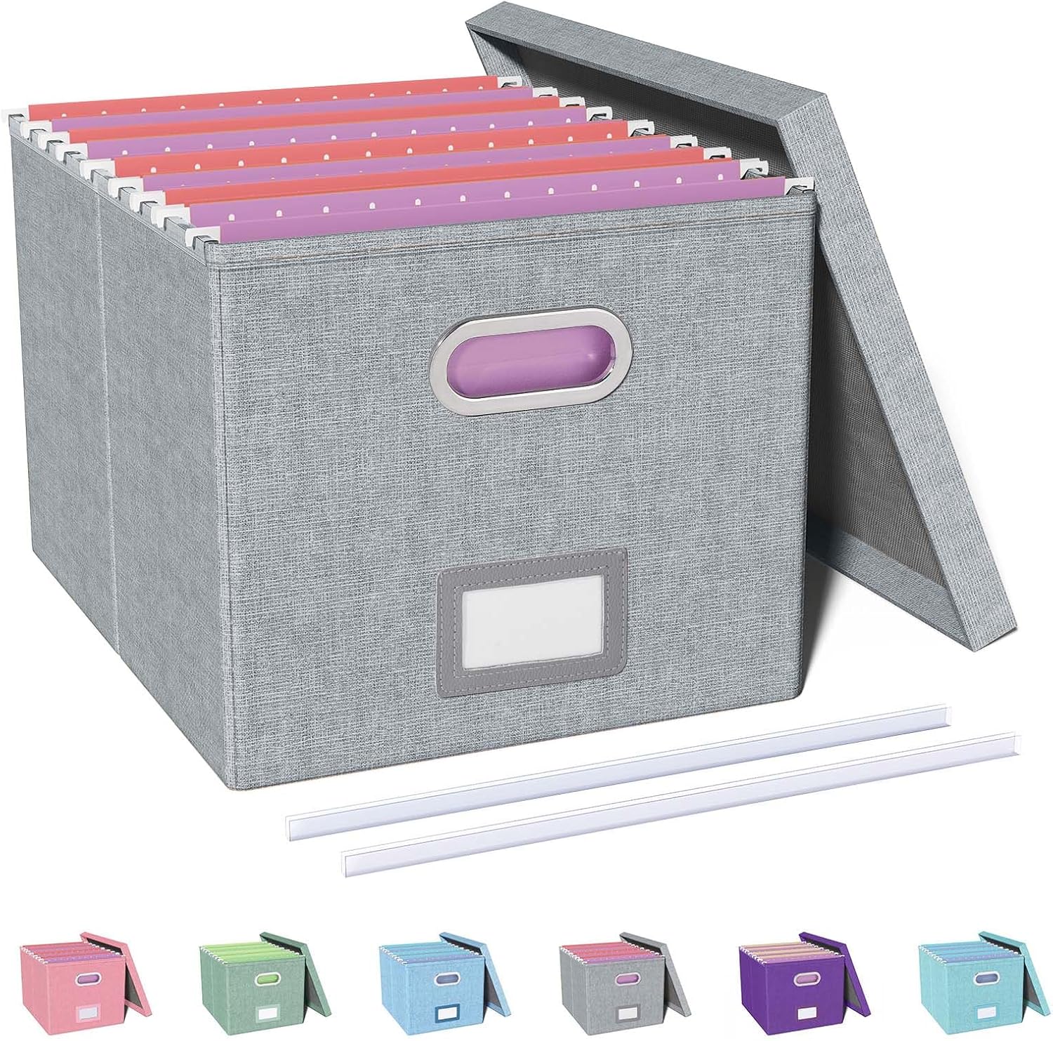 - Upgraded File Storage Box: Material and fabric upgrade and reinforcement, More durable, This file storage organizer is made of high quality MDF board, better support and bearing capacity. The lid can fit easily on the box after hanging folders.
