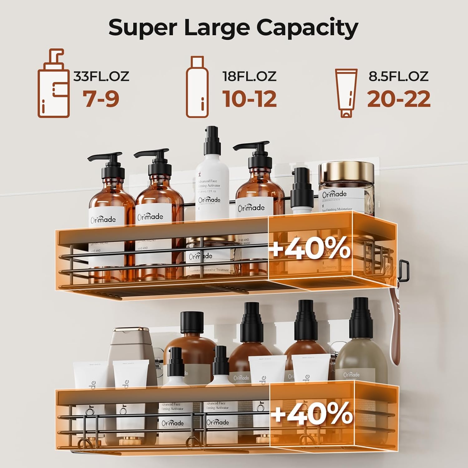 - Strong Adhesive: Orimade shower organizer is made of nano material and has powerful adhesiveness. No drilling and damage to the wall. Just stick the adhesive on the surface and install the shelf on it. If you need to move install place, you can search B07KF7RWG9 and purchase more adhesives. NOTE: DO NOT stick the adhesive strip on painted walls or wallpapers as it will take off your paint or wallpapers.