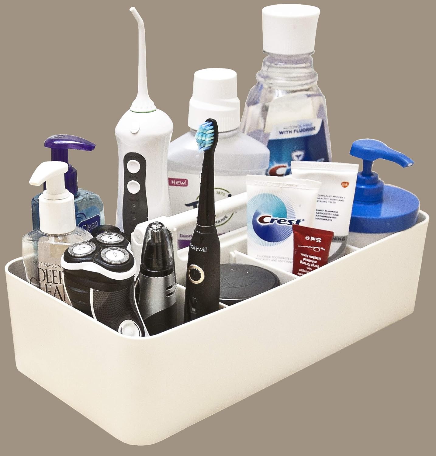 2 PACK - Portable DIY 8 Dividers Durable Plastic Organizer Tote Tool, Supply, Vanity Storage Home Office School Makeup Cleaning Caddy with Handle Made In USA (Ivory)