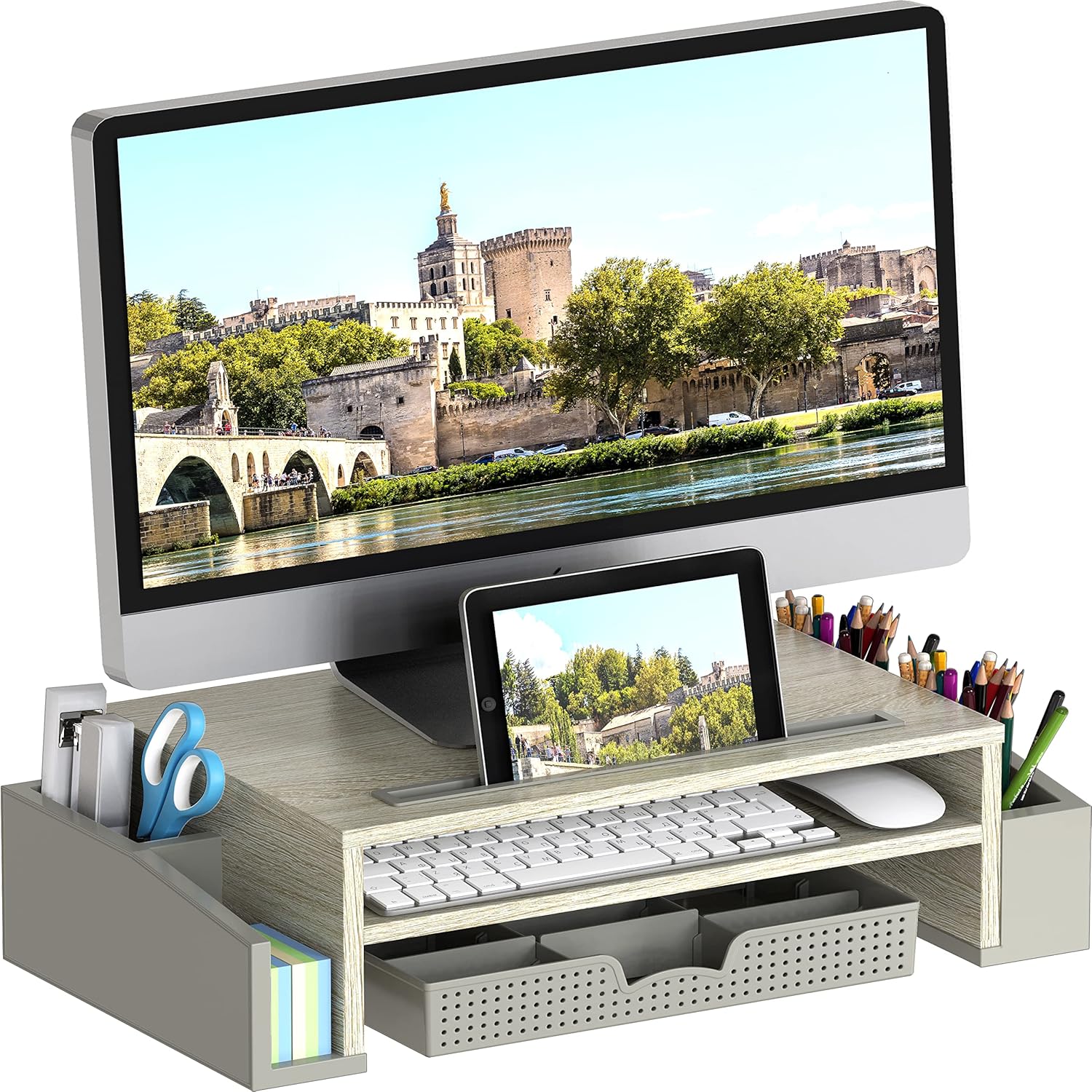 SIMPLE HOUSEWARE Desk Monitor Stand Riser with Adjustable Organizer tray, Maple