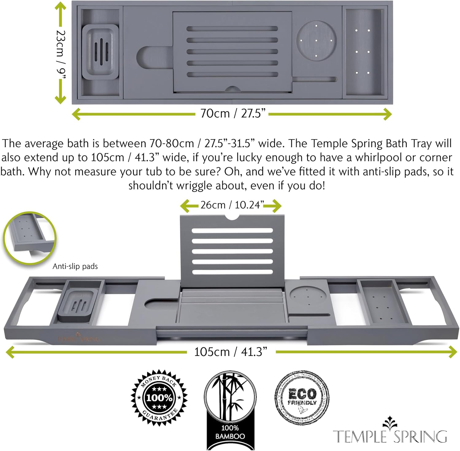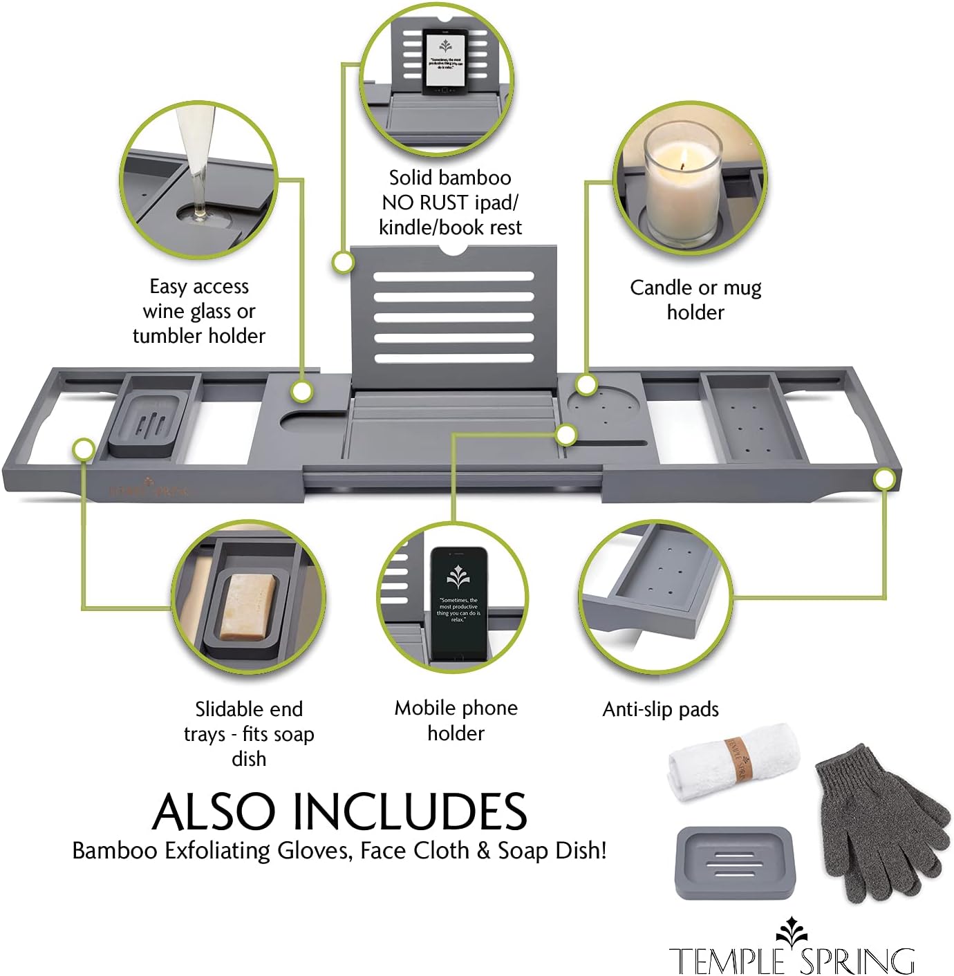 - 100% SATISFACTION GUARANTEE - We are confident you will love your Temple Spring bath tub tray, but if you're not completely satisfied, please get in touch. Experience the luxury and versatility of one of the finest bathtub trays for tub and enjoy the perfect combination of style and functionality.