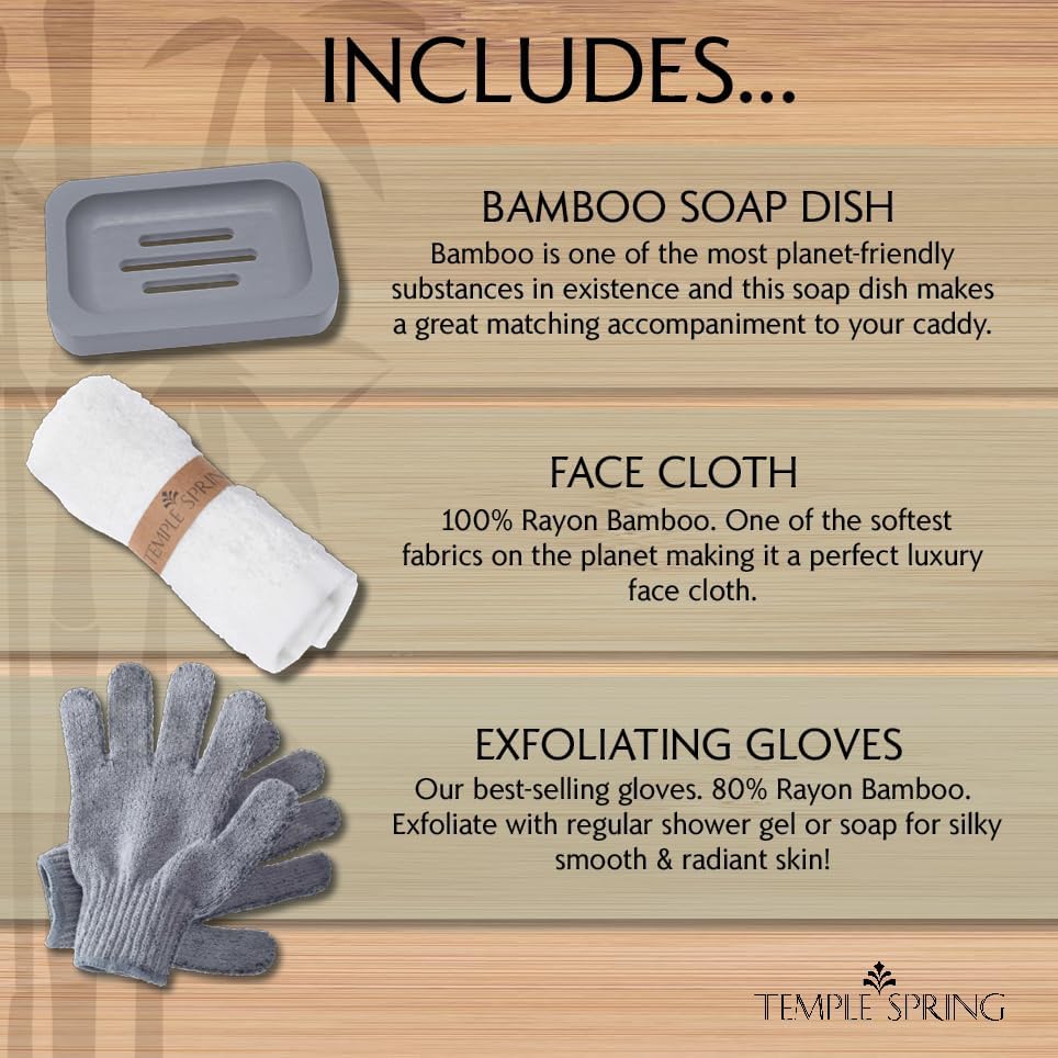 - INCLUDES MATCHING BAMBOO ACCESSORIES - Each purchase includes a matching bamboo soap dish, face cloth, and exfoliating gloves for added convenience. Pair this wooden tray with your favourite bathtub accessories to complete your bathroom tray setup.