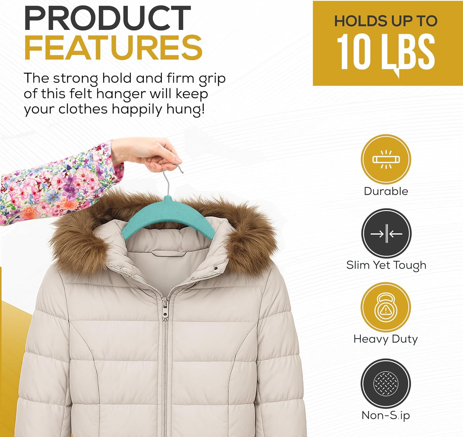 50 Pack New Premium Quality Velvet Hangers Ultra Thin Non Slip Adult Felt Space Saving Hangers for Closet Heavy Duty Coat Pants Dress Hangers 360° Swivel Hook Hold Upto 10 lbs Teal