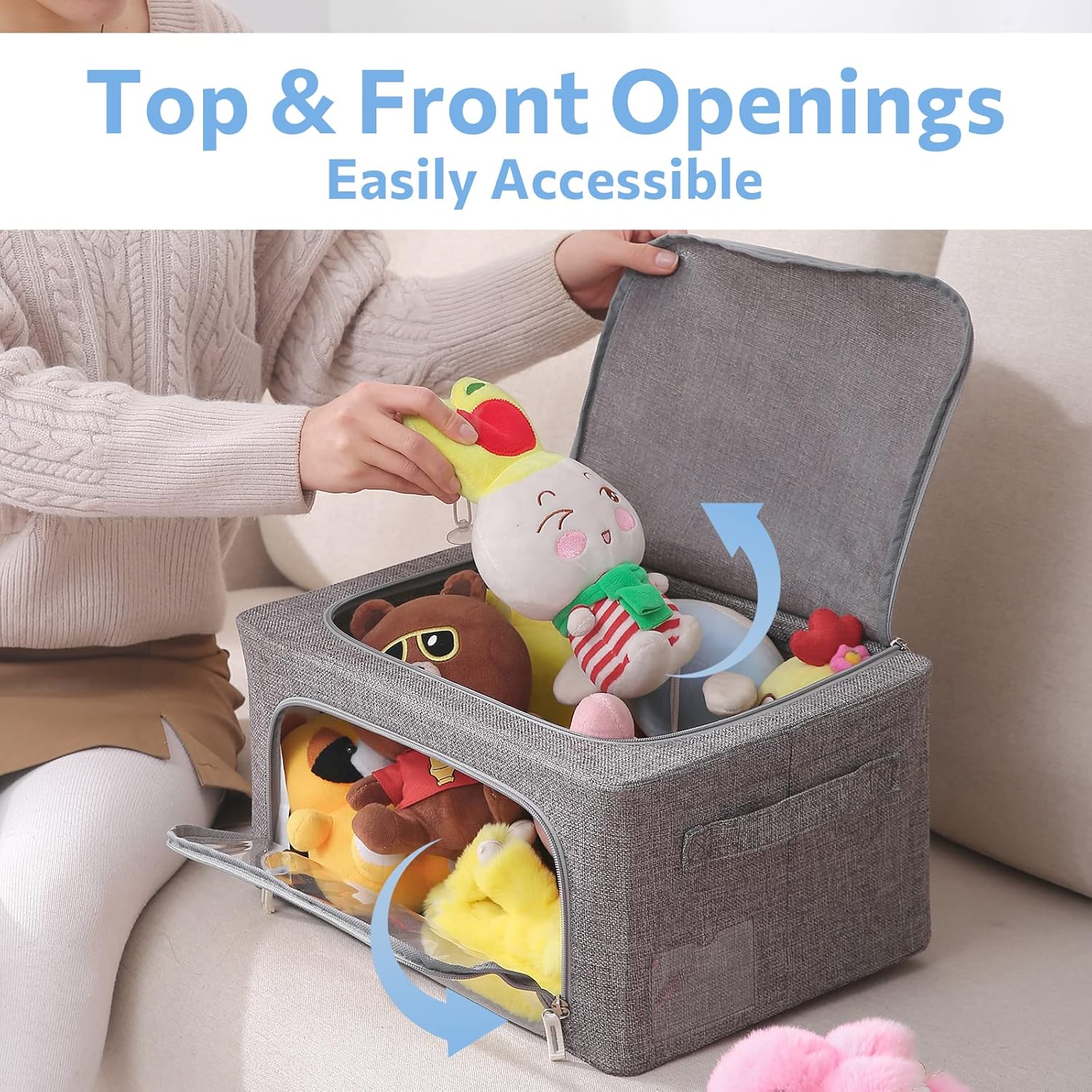 3Pack Foldable Storage Bins - Frame Storage Box Linen Fabric Stackable Clothes Container Organizer with Clear Window & Carry Handles Large Capacity (Small-22L, Dark Gray)