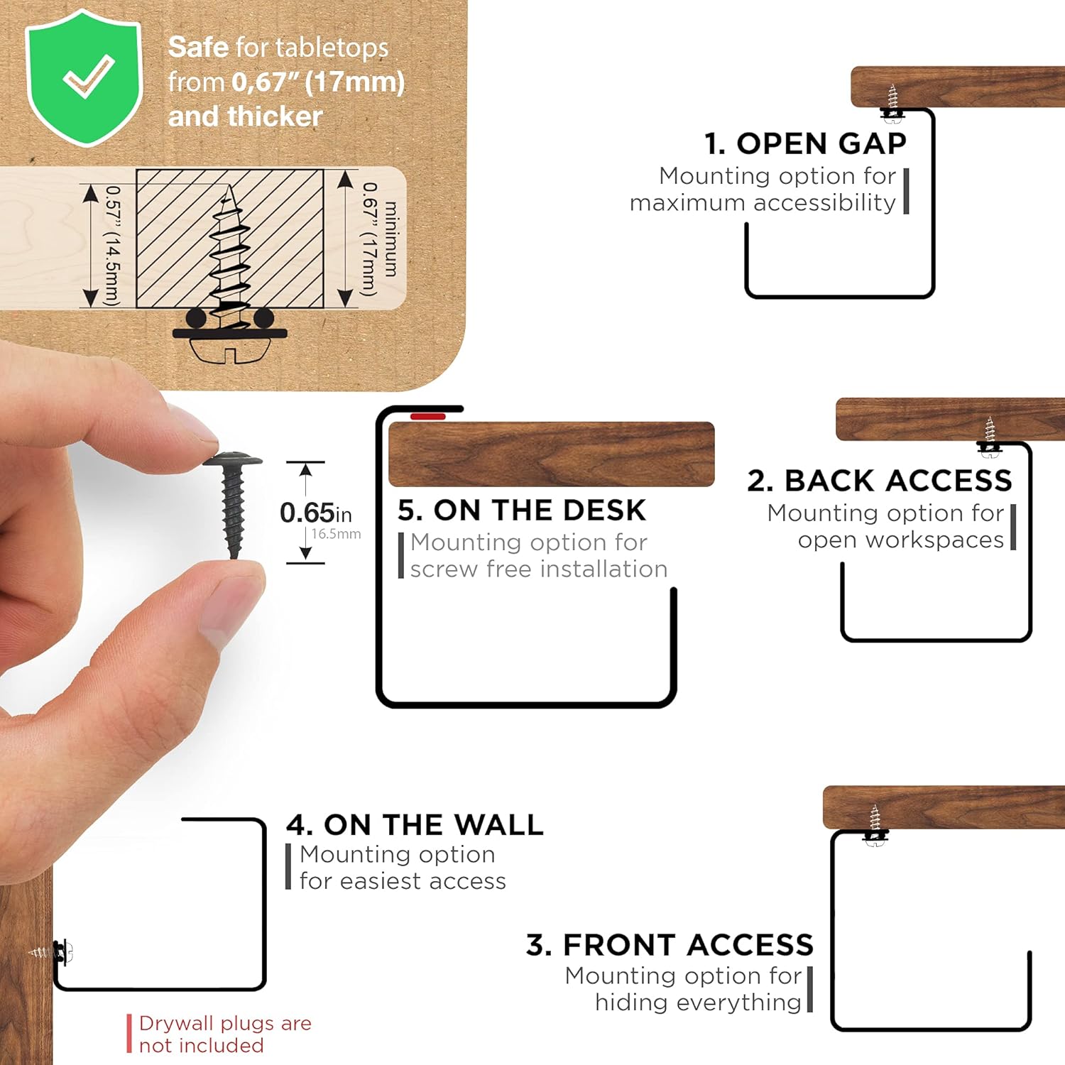 - EASILY MOUNTED: The under desk cord organizer tray installs to the bottom of any wood, MDF, or particleboard desk. The "No Drill" option also let's you install it to any glass desk using only the included adhesive. You can even mount it on the wall and use it as a cable management wall unit. Not suitable for installation on paper honeycomb-filled desks like some IKEA office desks - Linnmon and Skarsta.