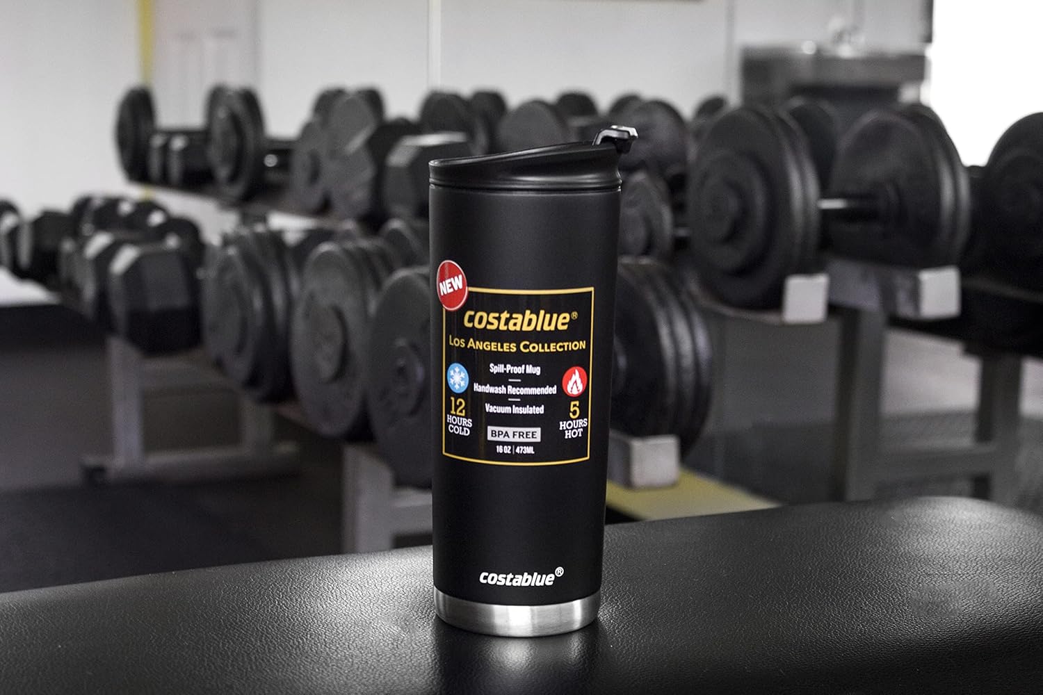 - INSULATED MUG: The Costablue insulated coffee tumbler is made with a double-wall vacuum insulated stainless steel to keep your beverages cool or warm for a long time. This coffee travel mug keeps your drinks hot for 3 hours and cold for 8 hours.