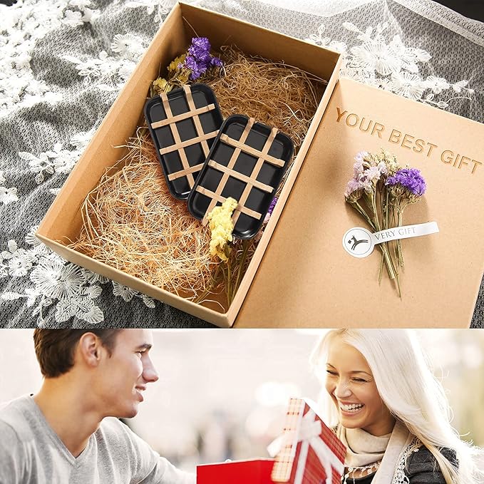 Bamboo Soap Dishes, 2-Pack Black Holder for Bathroom & Shower