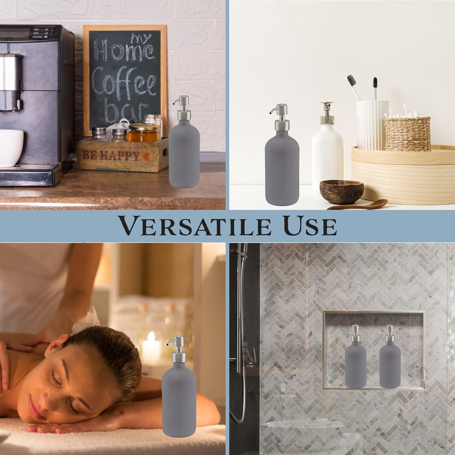 Cornucopia Brands 16oz Gray Pump Bottles (2-Pack); Gray Coated Glass Soap Dispenser Pump Bottles for Lotion, Hand Care & Liquid Soap