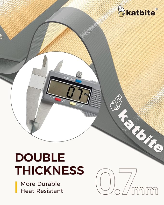 - DOUBLE THICKNESS: Thickness of silicone baking mats is 0.7 mm(approx. 1/32"), which is almost twice that of others mats (0.3 mm). Thicker mats will not slip or wrinkle when used, extra thick and resistant