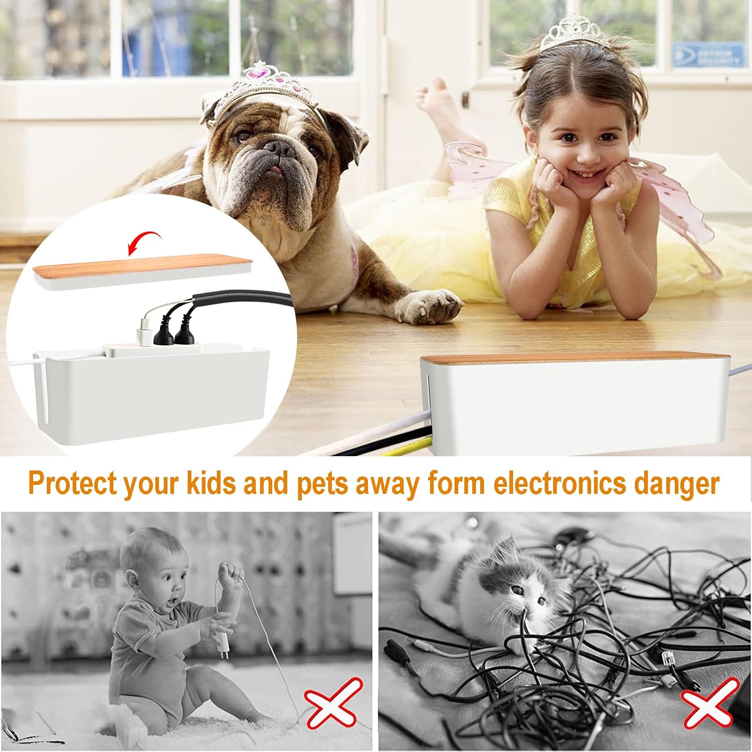 - 【Protect KIDS & PETS &Family Safety】-- Cable clutter& cable organizer and cord holder surge protector can make areas of the home or office unsafe. Floor cord covers protect your loved ones at home or colleagues at work by reducing the potential for electrical hazards with these cable management kits.