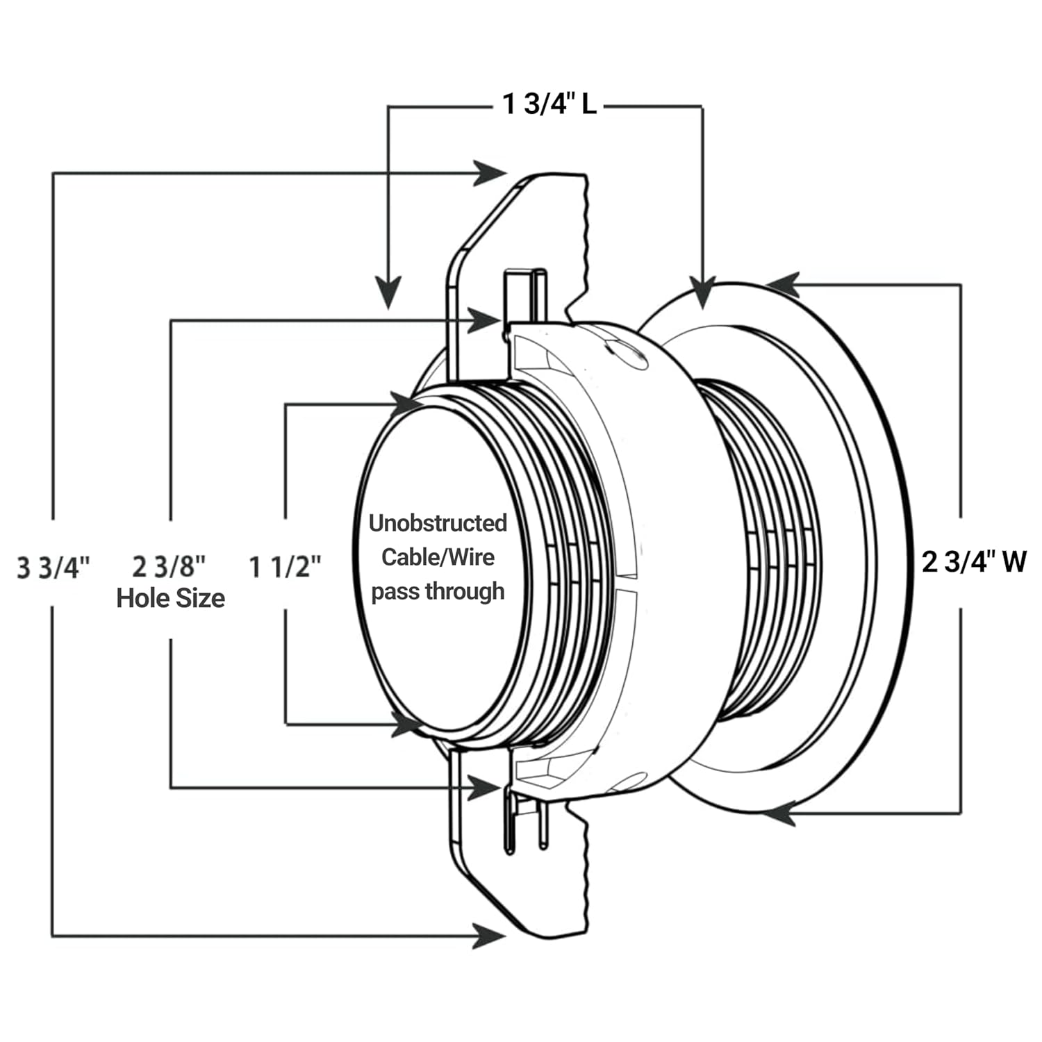 2PK White Patented: Only Cable, Wire, Cord Management Tool-Free Self-Securing/Locking Grommet and with Cap Slider, for Walls, Ceilings, Desks - Used for All Surfaces 3/8" to 1" Thick. Made in USA