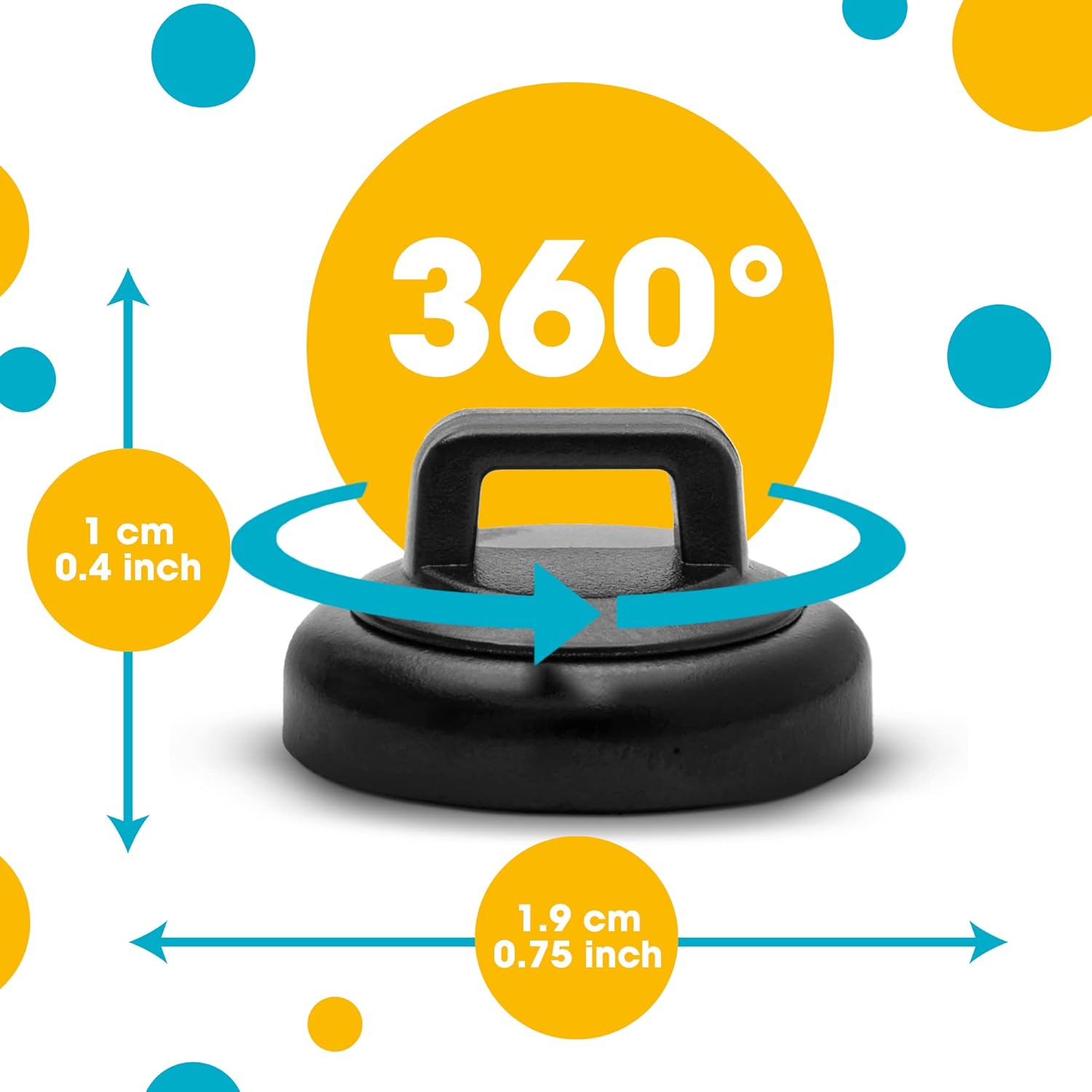 - Each individual black magnet in your 105 pack of magnetic cable zip tie mounts have the dimension of 1 cm x 1.9 cm with a diameter of 18.70mm. The bearing strength for each magnet is 10 pounds.