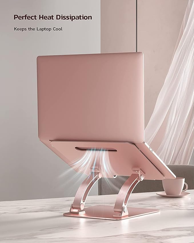 Nulaxy Fully Adjustable Laptop Stand for Desk, Dual Foldable Aluminum Computer Riser with Heat-Vent, Ergonomic Notebook Holder Portable Office Accessories Compatible with All 10-17" Laptops, Pink