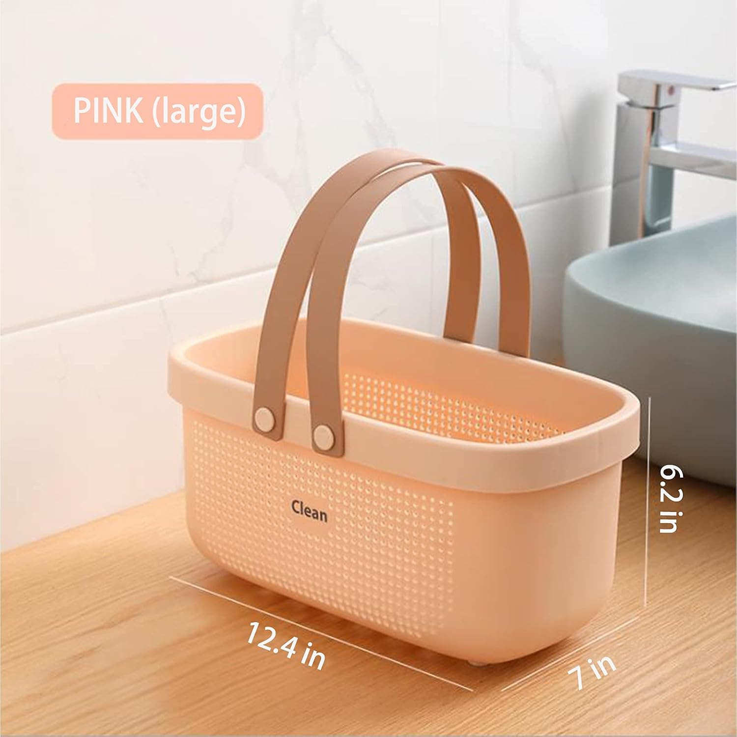 JiatuA Plastic Storage Basket with Handle Portable Shower Caddy Tote Organizer Basket Bin for Bathroom Kitchen Dorm Room Bedroom, Pink