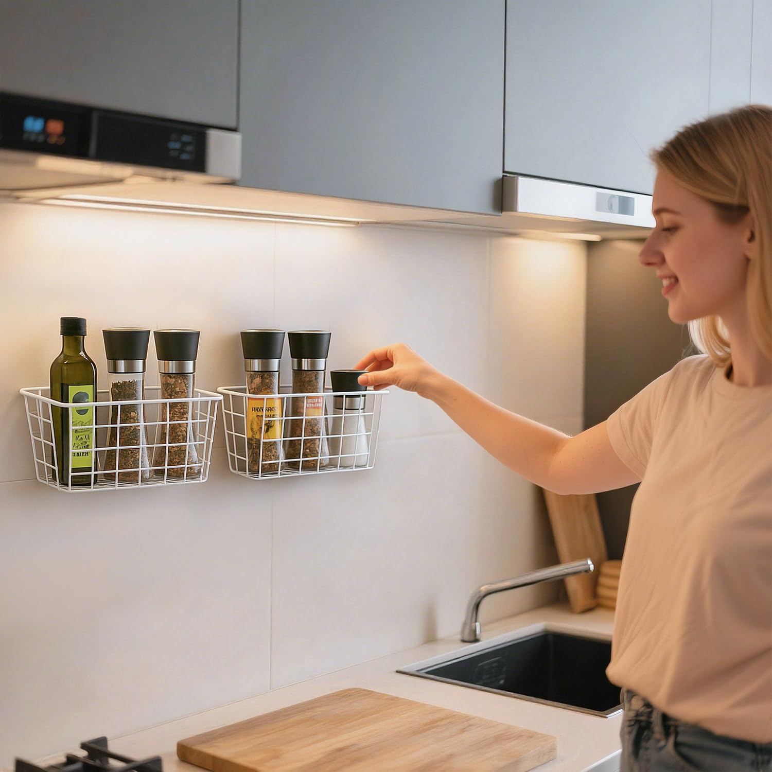 - Wall-Mounted Storage: Easily attach the organizer to your wall. The stickiness of adhesive is strong, don’t worry about the Wire basket moving easily. Also can withhold amount of weight. No drilling required, easy installation. NOTE: Better to wait after 24 hours to use it.