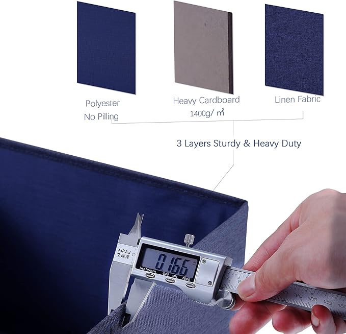 - DURABLE DOUBLE-SIDED HANDLES --- These storage boxes feature reinforced double-sided handles with firm stitching to let you move these containers effortlessly. Wherever you place them, in the closet, under the bed, or on the shelf, there is no worry to move them with containing items inside.