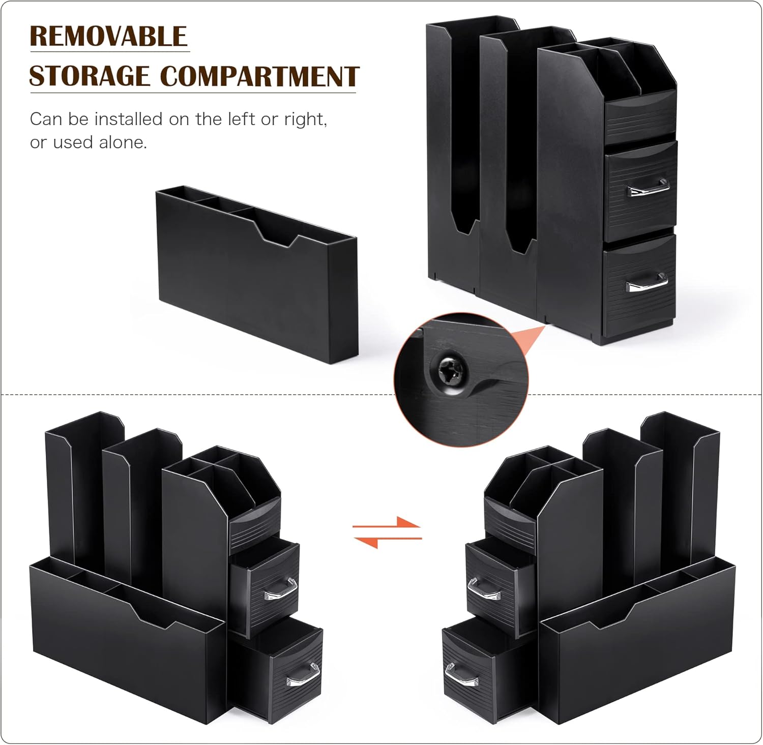 SZQINJI Coffee Condiment Organizer 11-Compartment Breakroom Coffee Station Organizer Countertop Cup Storage with 2 Drawers Black