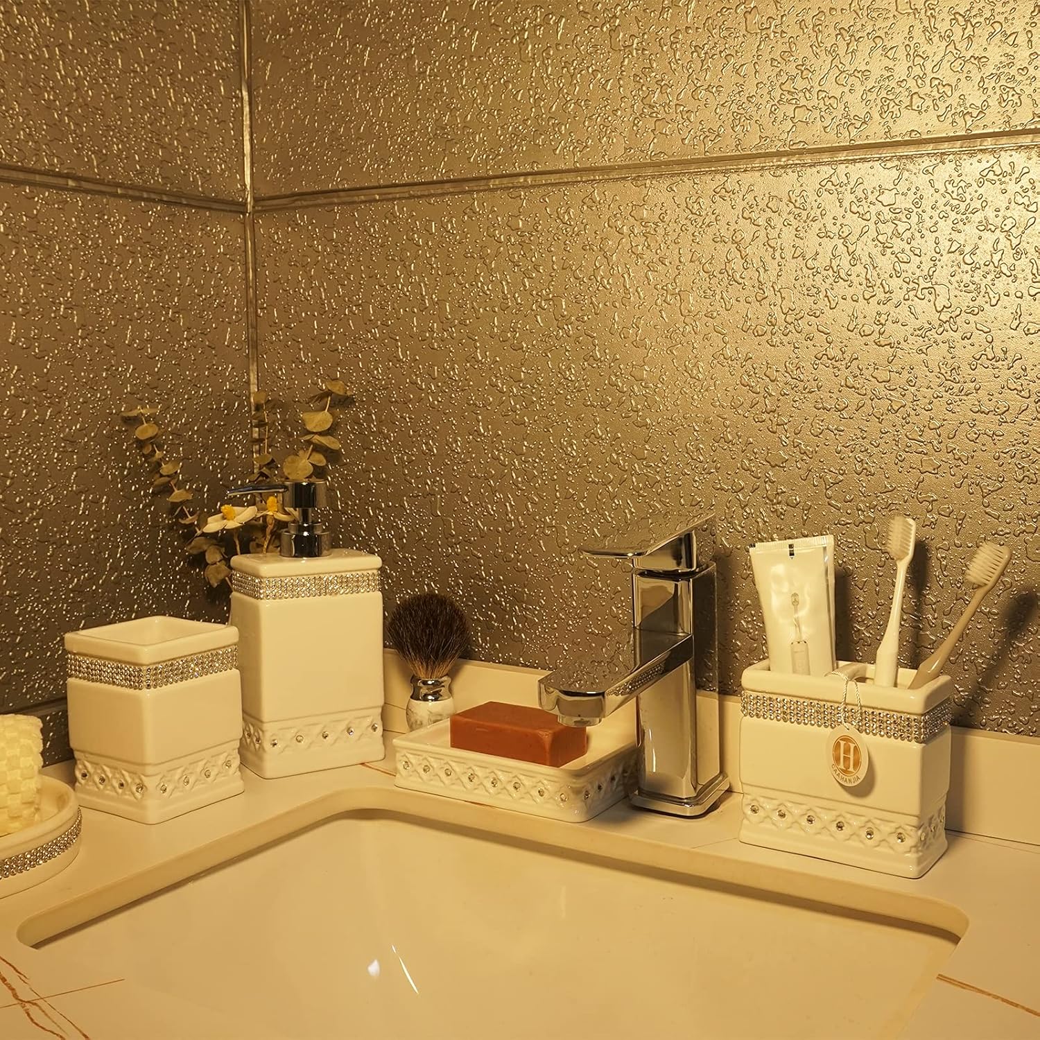 - 【Stylish Design】: Dazzling zircon design and bright silver lines, making your bathroom luxurious and noble