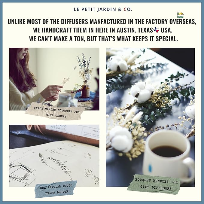 - FLORIST MADE: Fragrance diffuser is Crafted in Austin, Texas, our preserved flowers are finely handpicked by our In-house Austinite florist, Grace-Anaïs, to complement the unique modern farmhouse interior with French decor