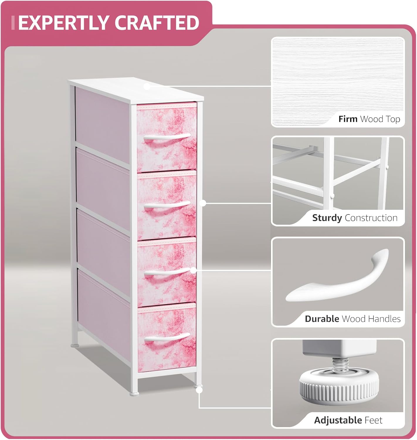 - MULTIPURPOSE: This Sorbus Kids Narrow 4 Drawer Bedroom Dresser can be used as an end table, side table, or bedside table to store clothes, blankets, crafts, linens, baby clothes, lingerie, purses, scarves, socks, accessories, gadgets, toiletries, makeup, hair/beauty, cosmetics, office supplies, toys, games, Books, paperwork, knitting supplies, and more