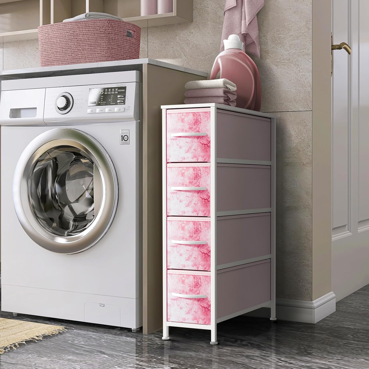 Sorbus Kids Narrow Dresser with 4 Drawers - Vertical Slim Storage Chest of Drawers with Steel Frame, Wood Top & Easy Pull Fabric Bins for Small Spaces, Closets, Bedroom, Bathroom & Laundry