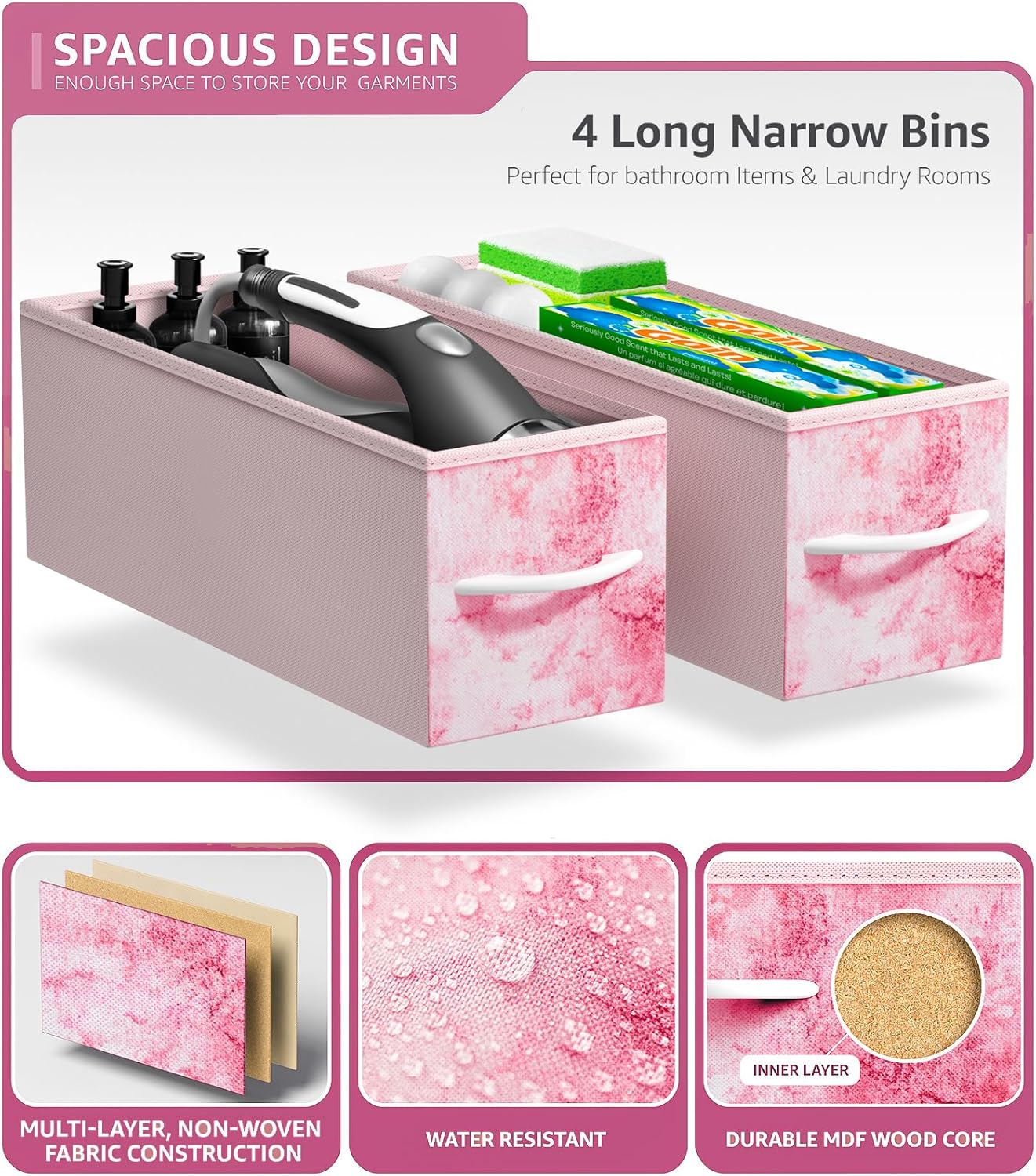 - SPACIOUS STORAGE: This long bedroom dresser features 4 fabric drawers, offering large storage space for nighttime necessities - Each drawer is approximately 5.87 inches deep - The MDF wood top features a smooth beige finish - Ideal for displaying a lamp, alarm clock, phone, charger, eyeglasses, and more