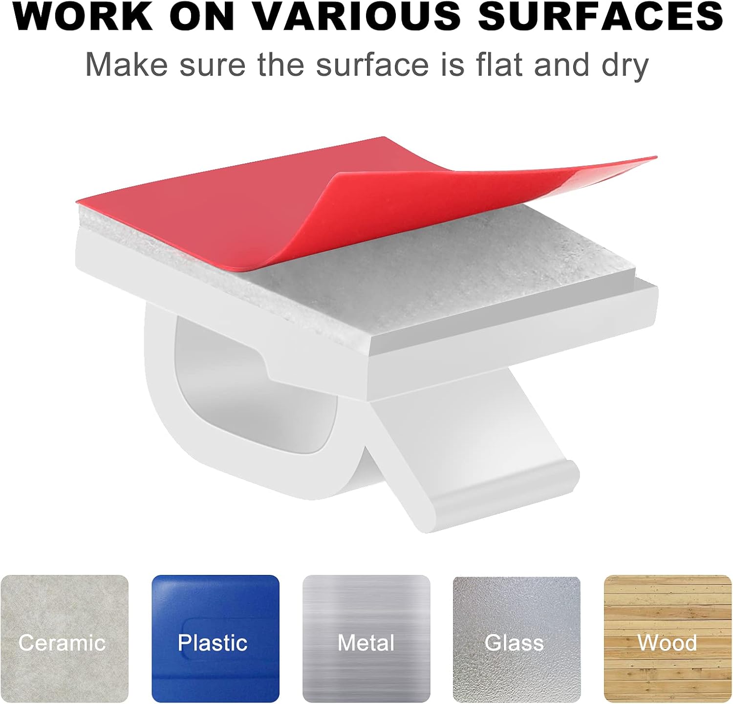 - 【Note before use】Make sure to clean the surface with alcohol pads before you use the adhesive cord clips, stick it on and press firmly for 30 seconds, and use them after 24 hours for maximum adhesion.