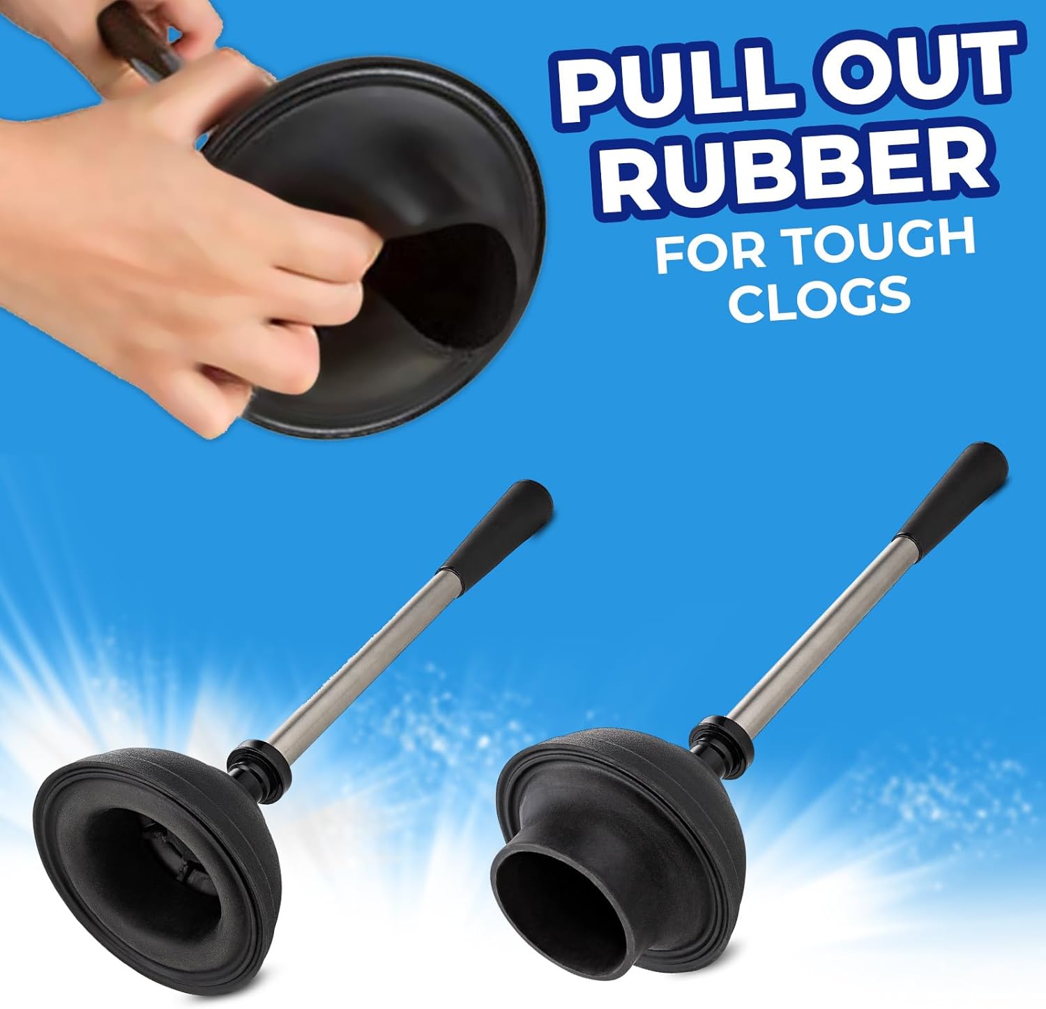 - POWERFUL TOILET PLUNGER WITH SUPERIOR SUCTION: features an upgraded plunger cup and pull-out flange for a secure fit on all bowl types, delivering efficient clog removal with minimal effort